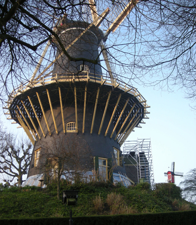 De molen is gebouwd in het jaar 1755 op een deel van de oude stadswal van Woerden. Rondom dit deel van de oude stadswal heeft men grondsoorten aangebracht om een goed draagvlak te creëren voor het fundament van de molen. We noemen nu dit deel van de oude overgebleven stadswal, “de Molenberg”. |