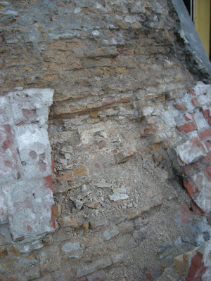 | In een strenge winter zal ook vorst een belangrijke bijdrage leveren aan het degradatieproces bij overmatig vochtaanbod. De steenkorrels waaruit de gebakken stenen bestaan worden uit elkaar gedrukt door bevriezing van het vocht. |