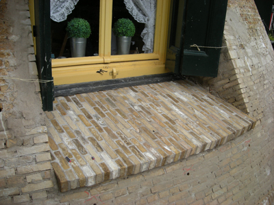 De beide buitenvensterbanken zijn nu opgebouwd uit gemetselde IJsselsteentjes.